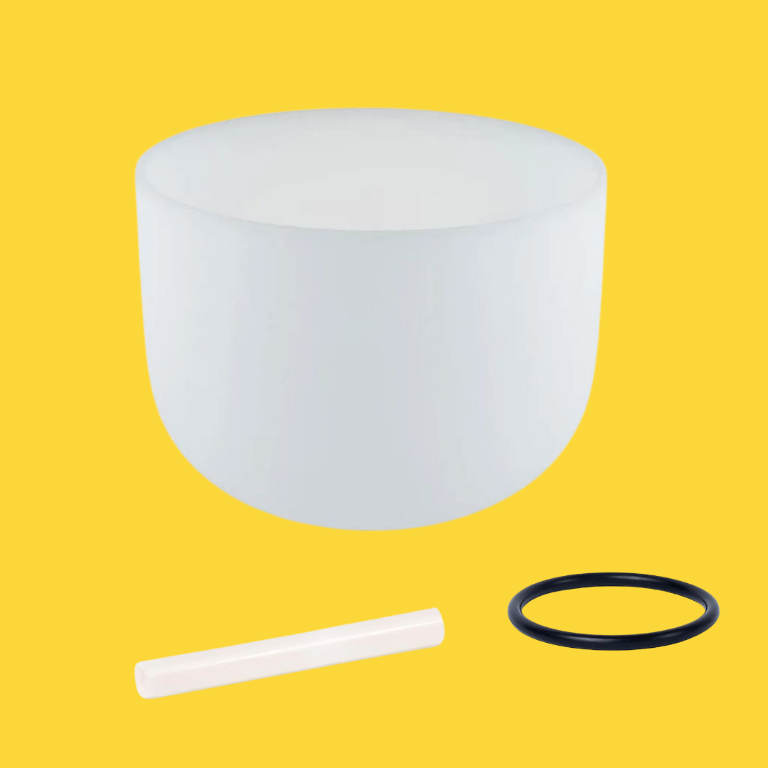 This crystal singing bowl is made of pure powdered quartz crystals which are heated to several thousand degrees. The heating integrates the individual particles of the quartz powder and a bowl is formed. They are then individually tuned to a specific musical note.