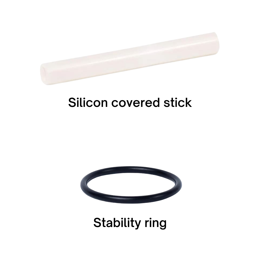 Comes with silicon covered playing stick (glass centre) and rubber stability ring.
